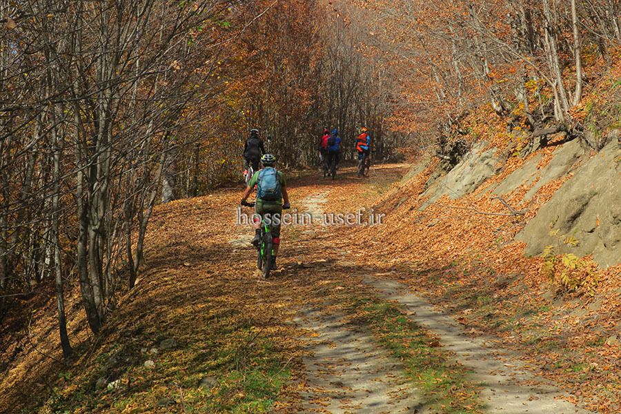 دوچرخه سواری در جنگل های پائیزی